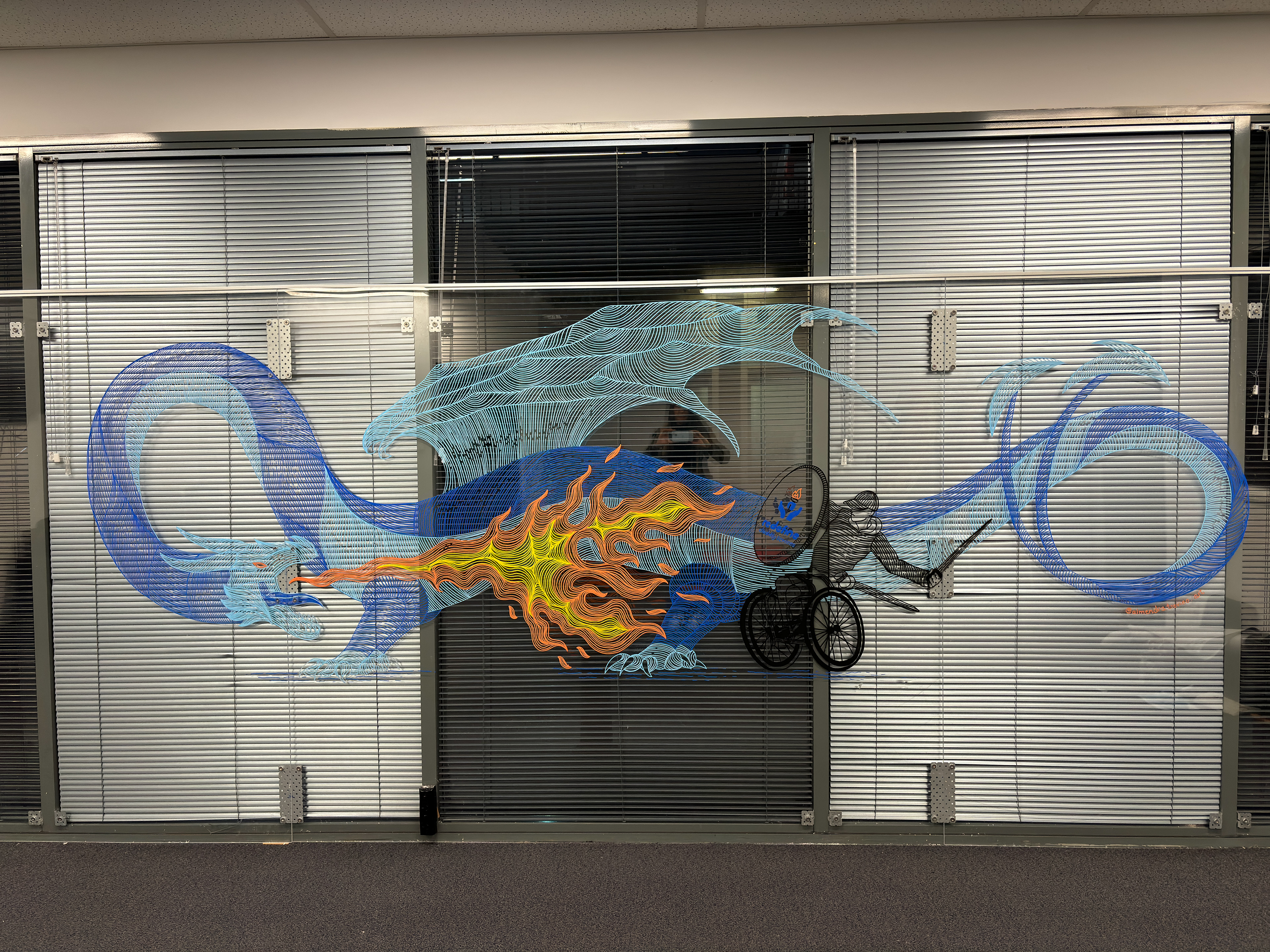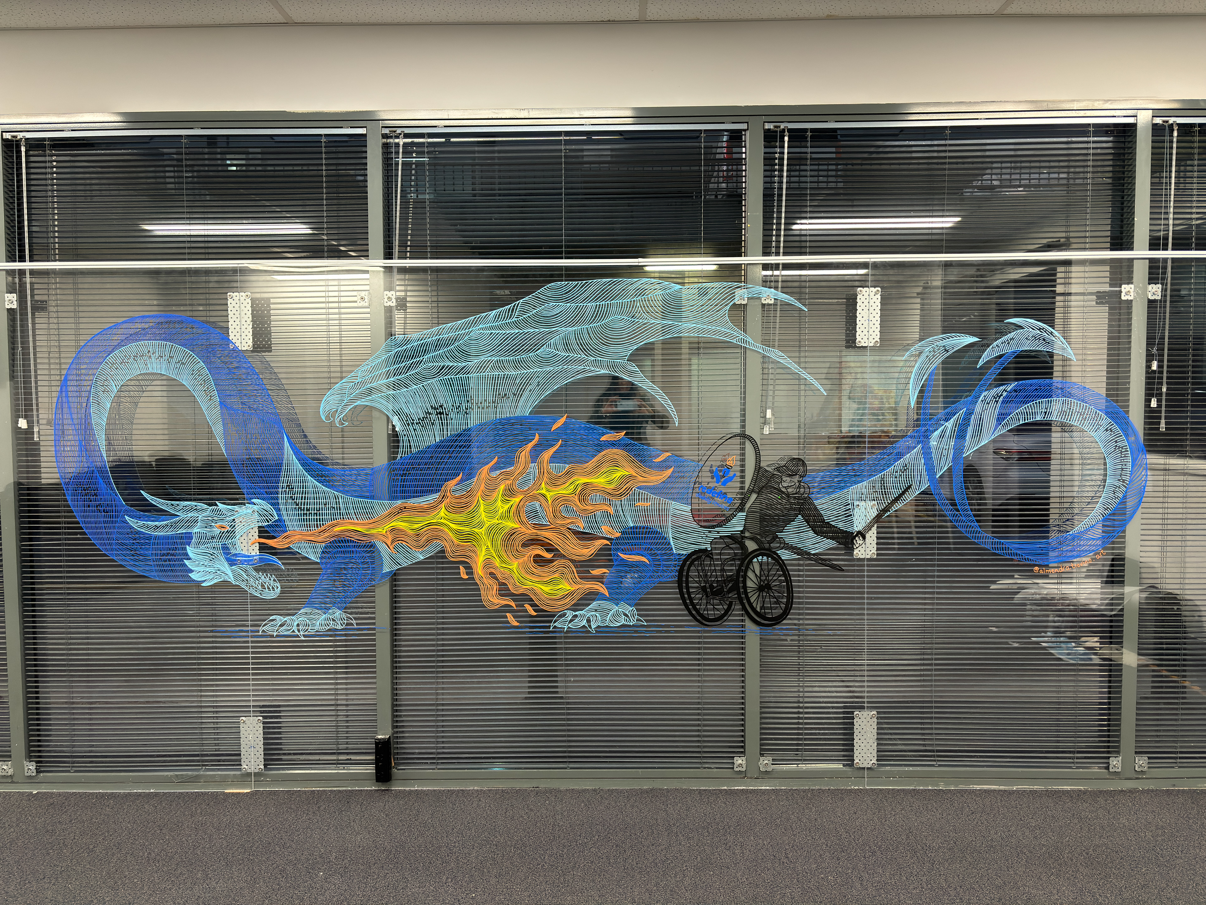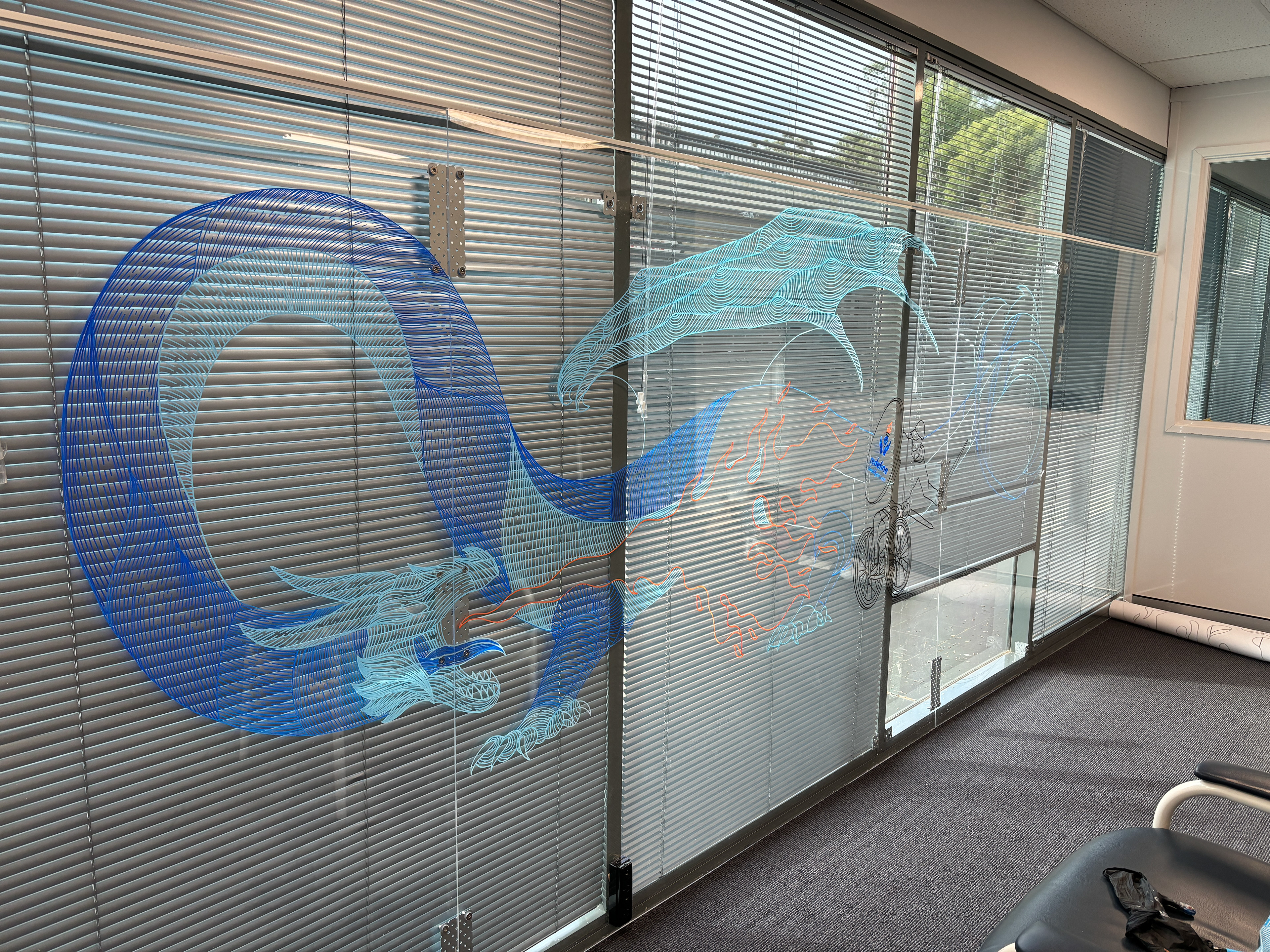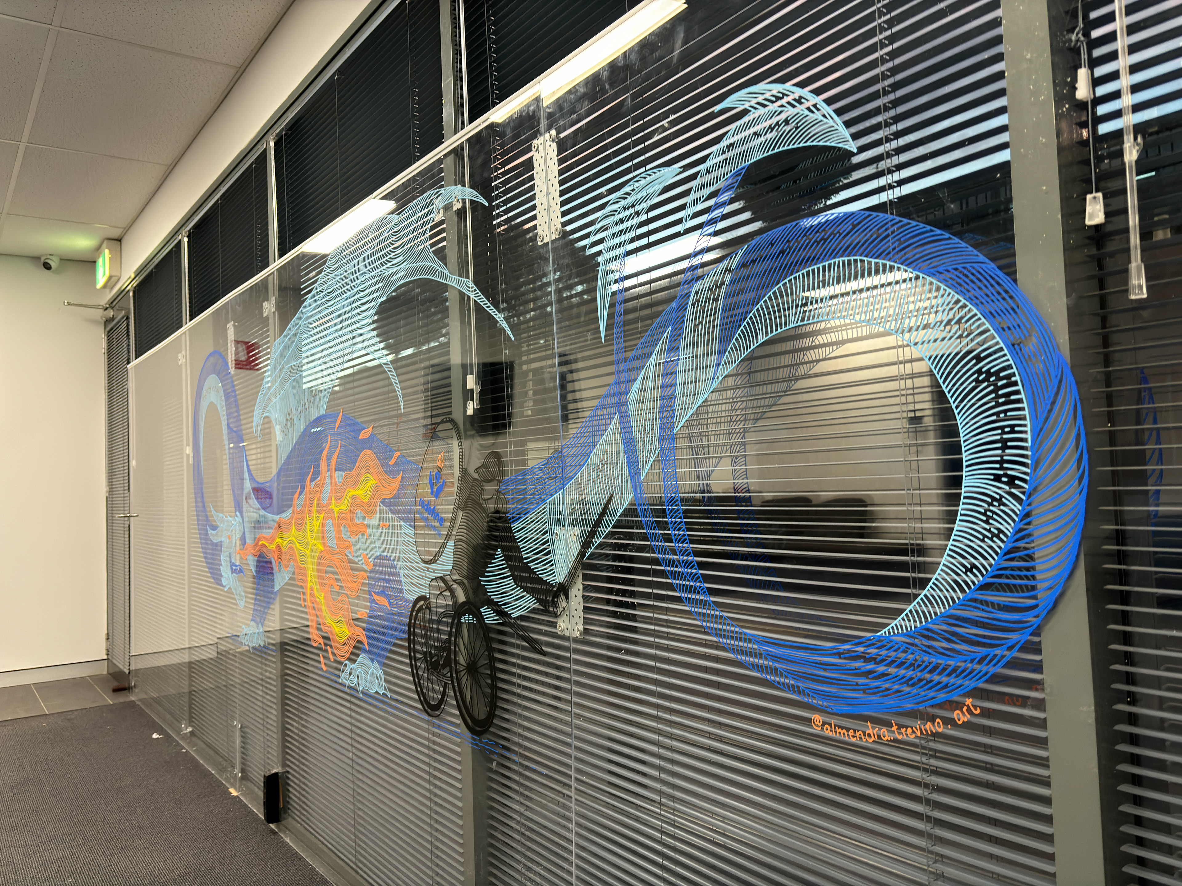 Redefine Disability Center in Syndey, hired me to design and paint on one of their windows. I had the idea to draw a brave guy on a wheel chair fitting a giant dragon, this was the result.