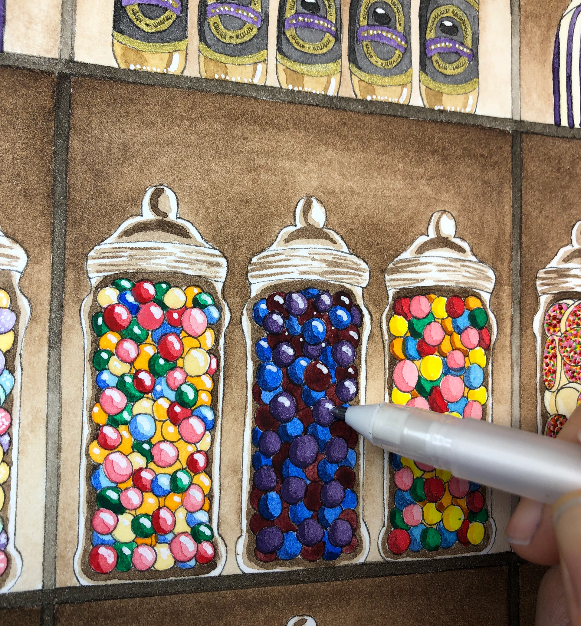 Vintage Candy Shop Watercolour artwork